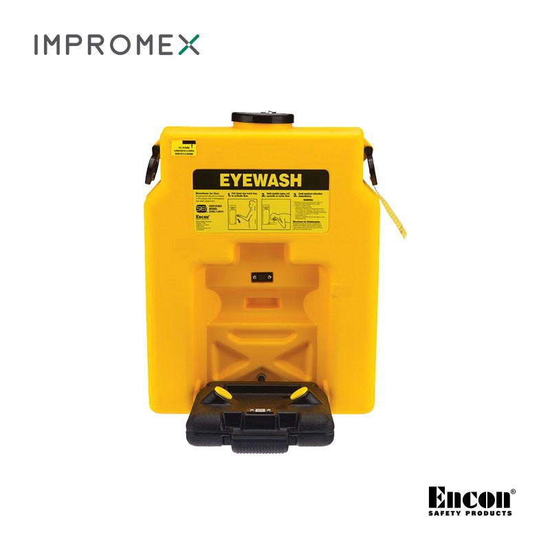 Para áreas donde no se dispone de agua potable, estaciones lavaojos portátiles y autónomas, alimentadas por gravedad y con cartucho sellado.